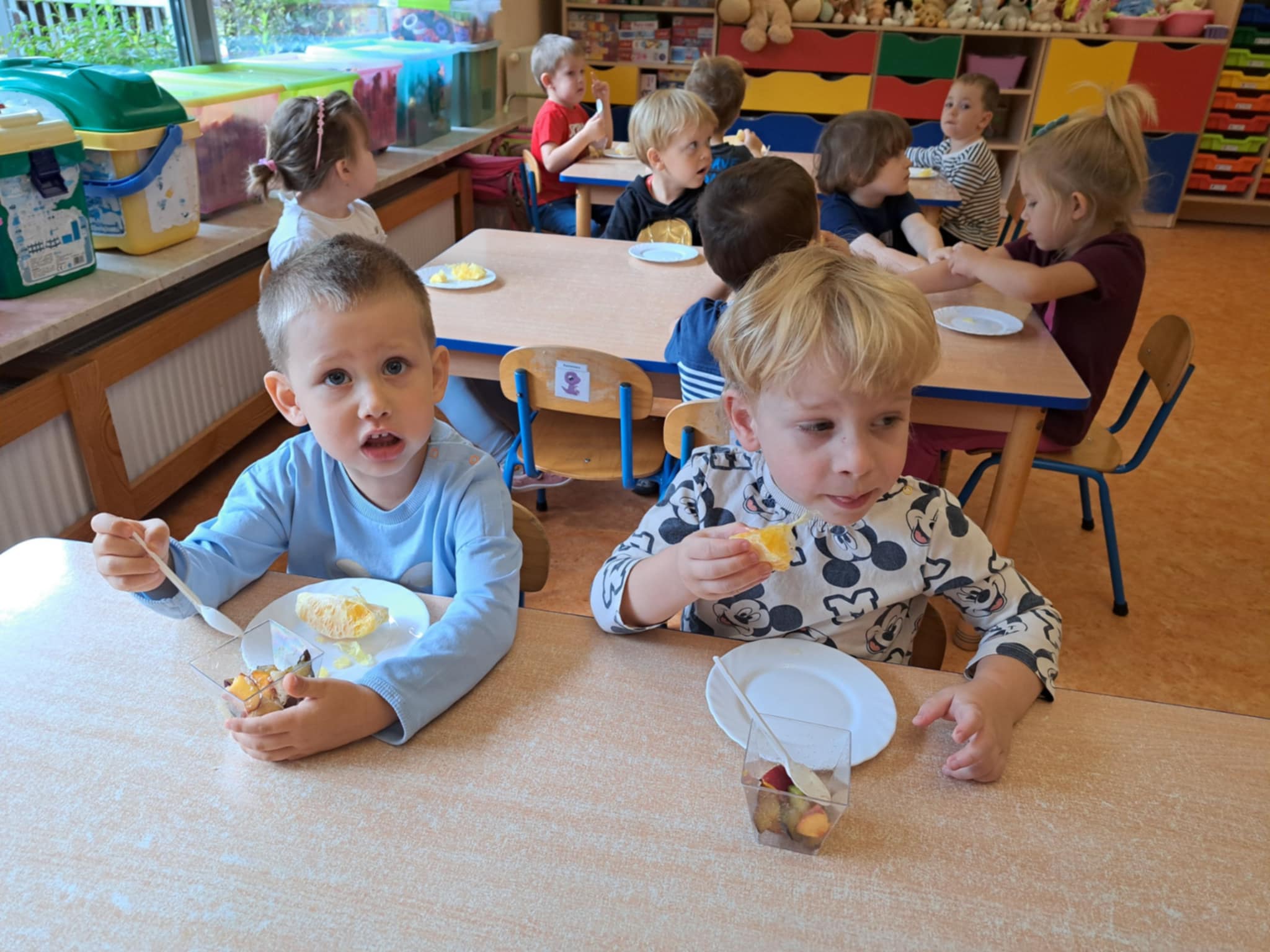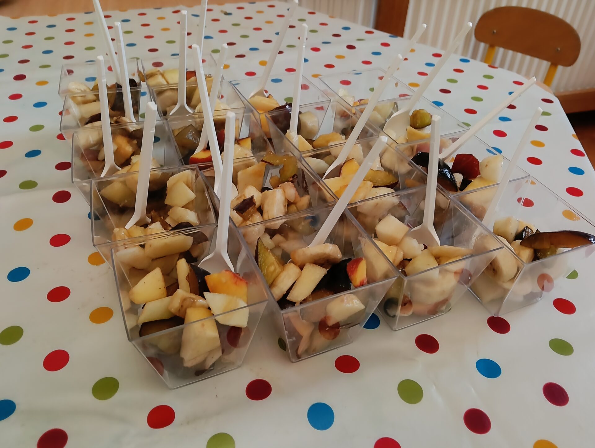 Dziś w naszej grupie Słoneczek wydarzyło się coś wyjątkowego – dzieci samodzielnie przygotowały pyszną, kolorową sałatkę owocową!