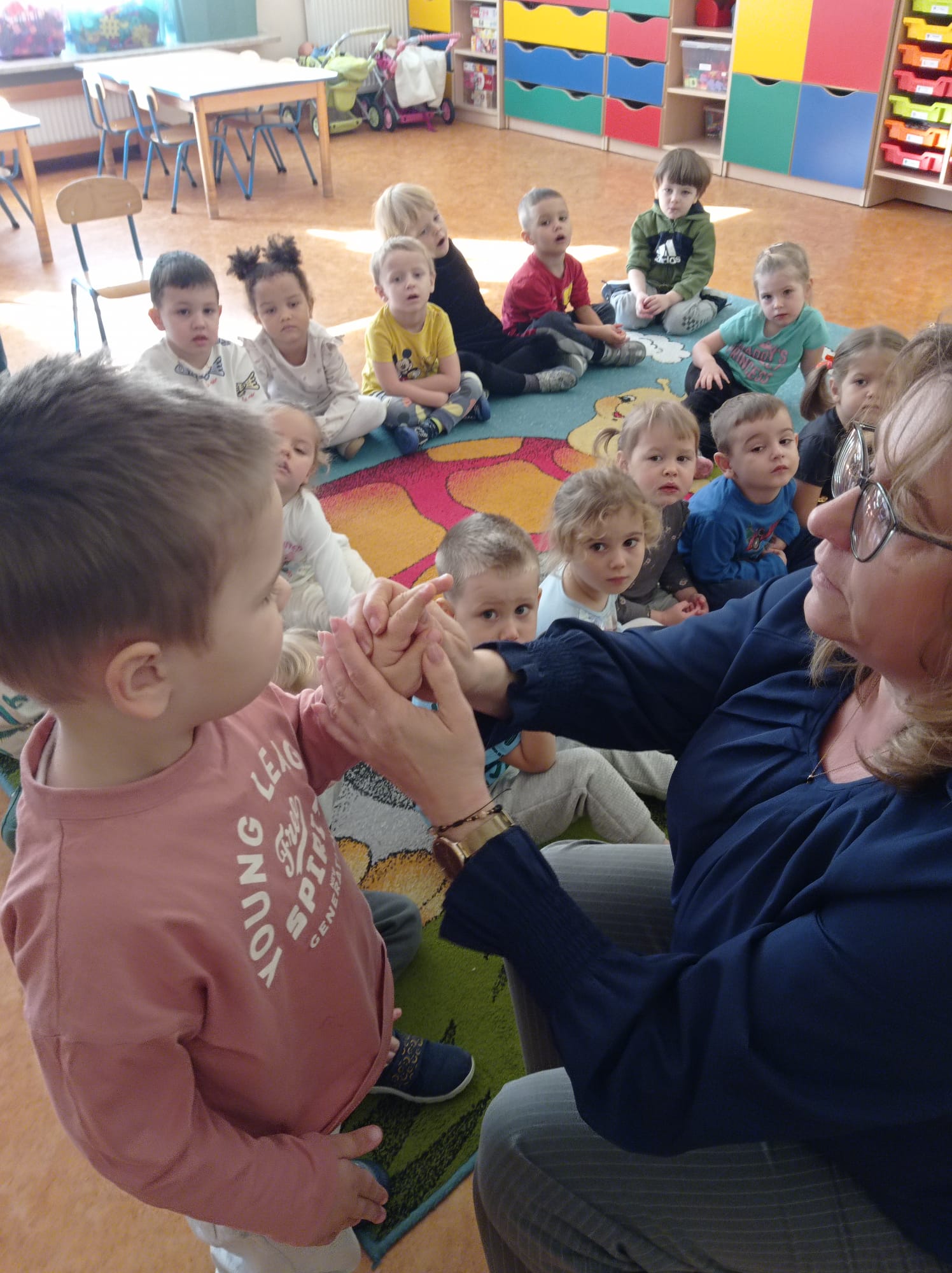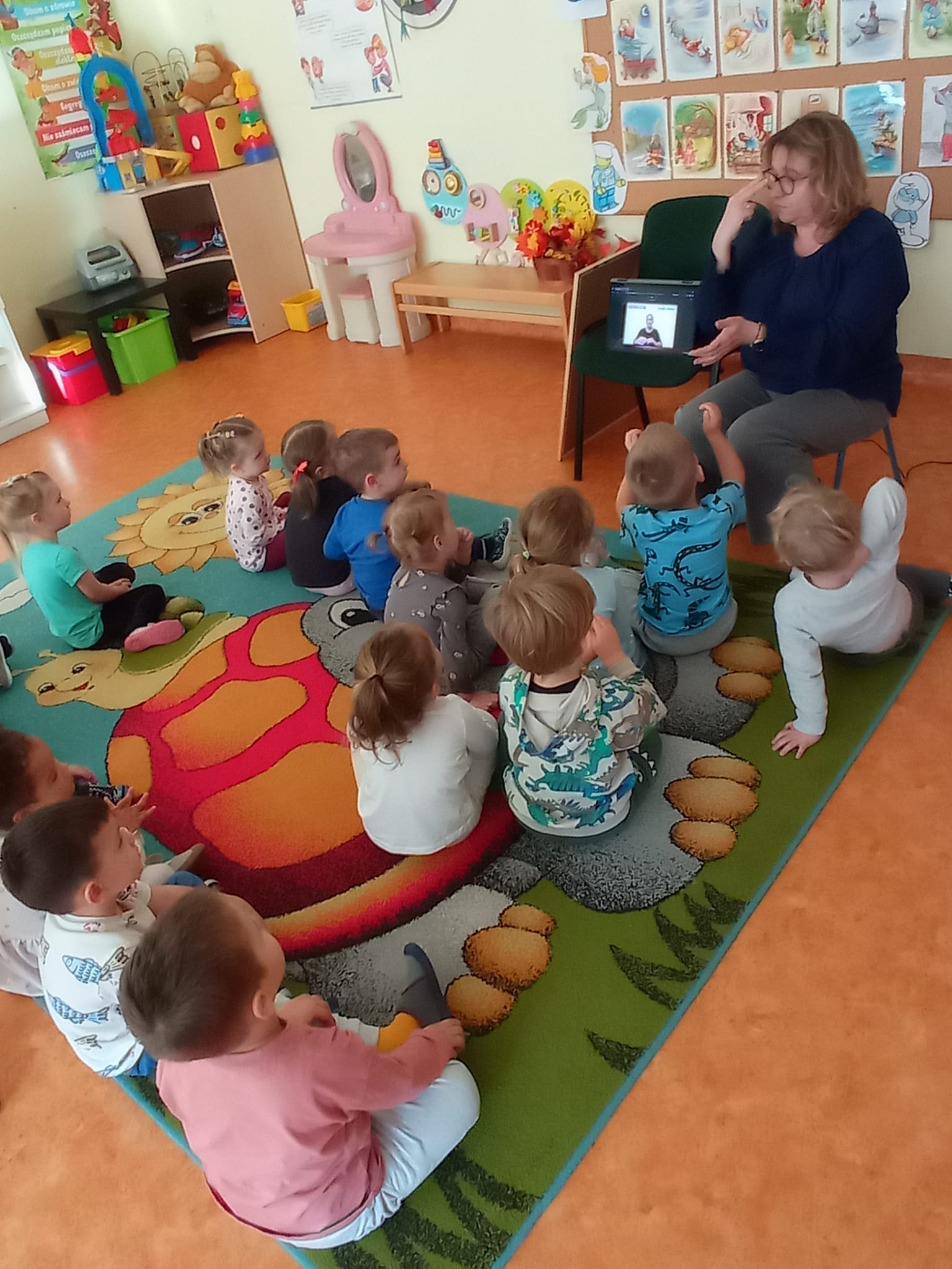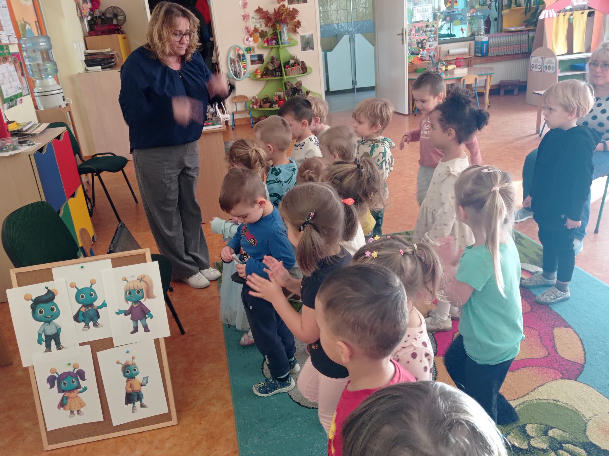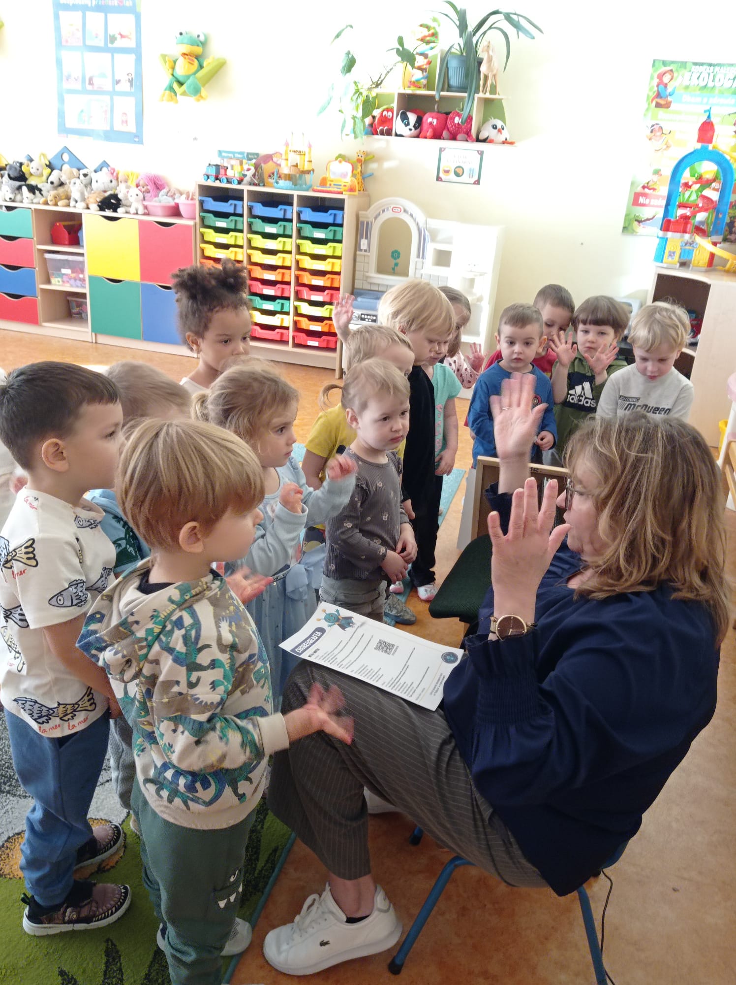 Grupa „Słoneczka” z ogromnym zaangażowaniem uczestniczy w projekcie „Migolandia – mały gest, wielka komunikacja”, którego celem jest rozwijanie umiejętności komunikacyjnych dzieci poprzez wprowadzenie elementów języka migowego i alternatywnych form porozumiewania się.