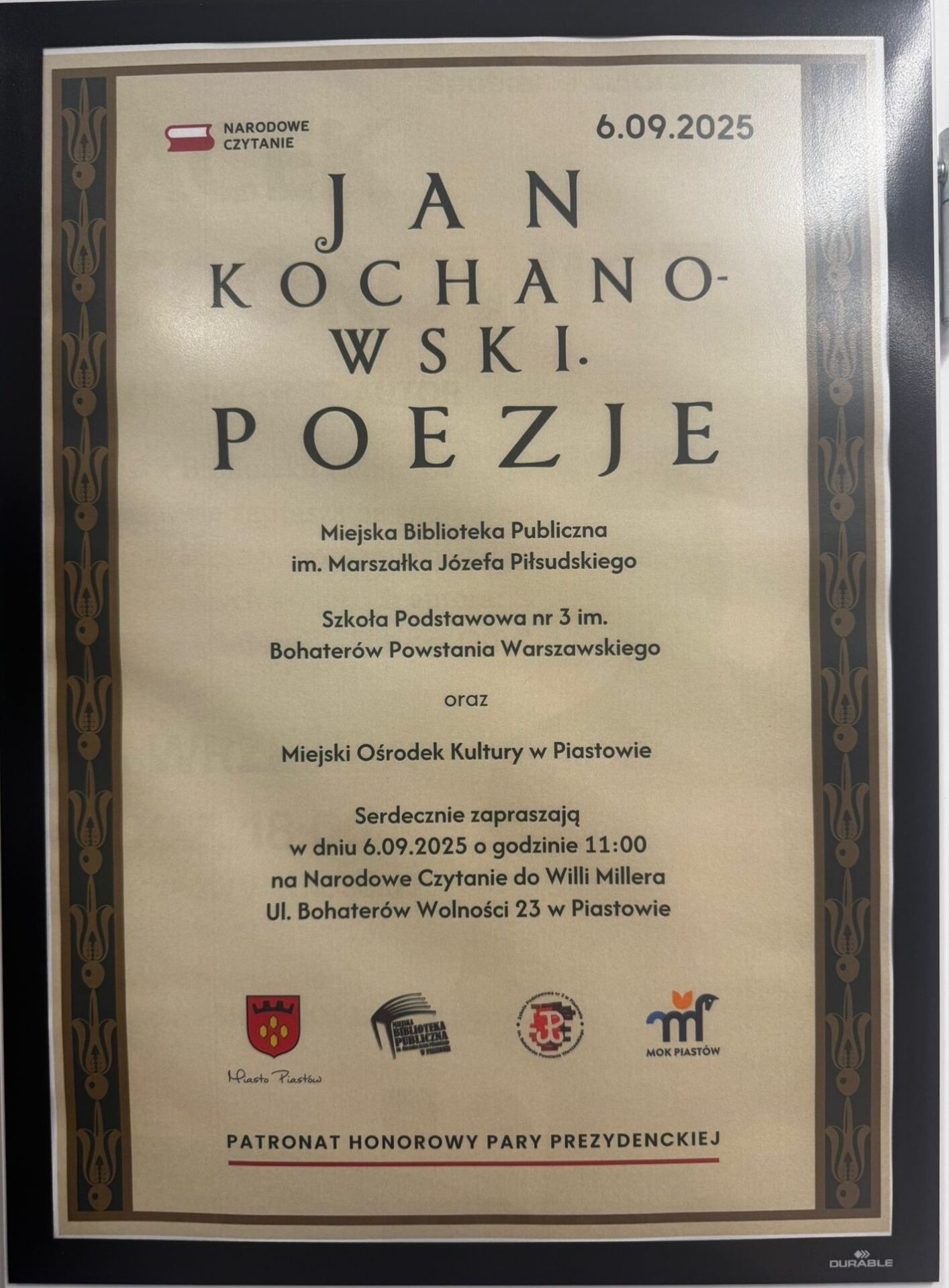 W tym roku wspólnie czytaliśmy poezję Jana Kochanowskiego – pełną refleksji, humoru i troski o Ojczyznę. Choć pogoda pokrzyżowała plany spotkania w plenerze, wydarzenie odbyło się w bibliotece i przebiegło w wyjątkowej atmosferze.