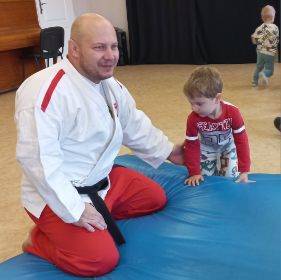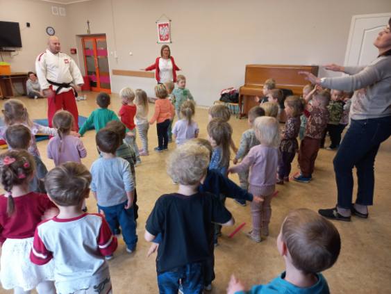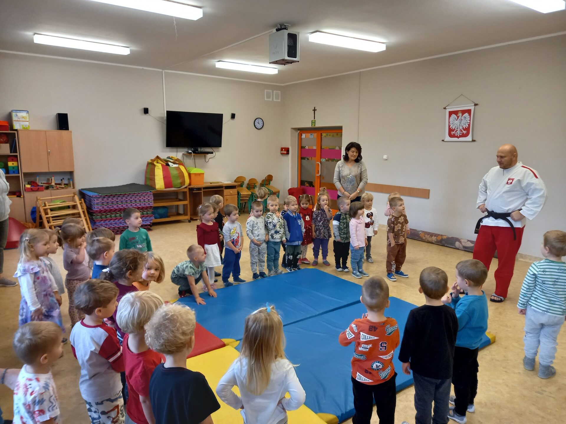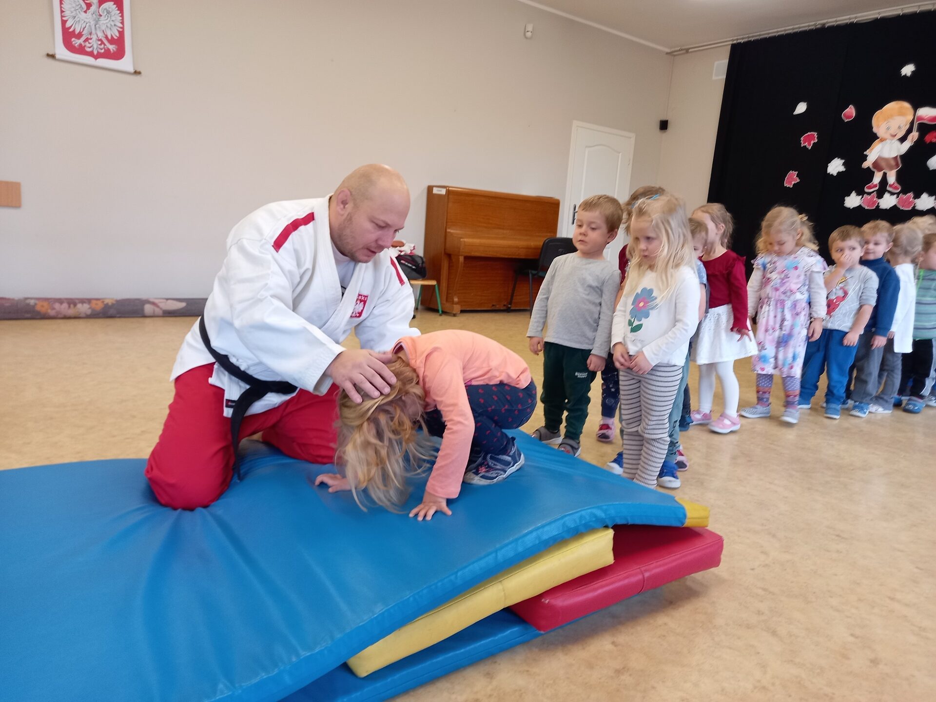 Zawodnik ju-jitsu wywalczył wiele medali w zawodach rangi ogólnopolskiej i międzynarodowej. Z naszymi przedszkolakami przeprowadził zajęcia ruchowe, a maluchy podarowały mu w podziękowaniu piękną laurkę