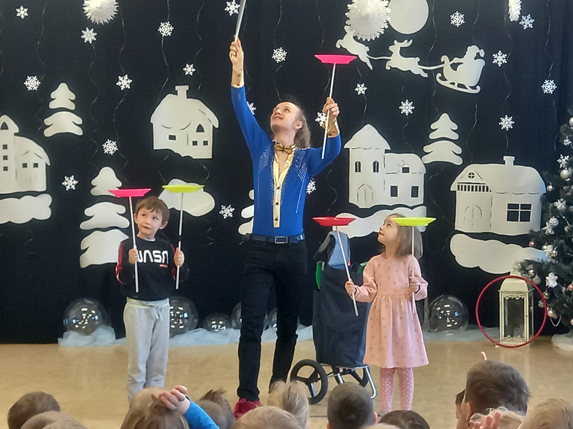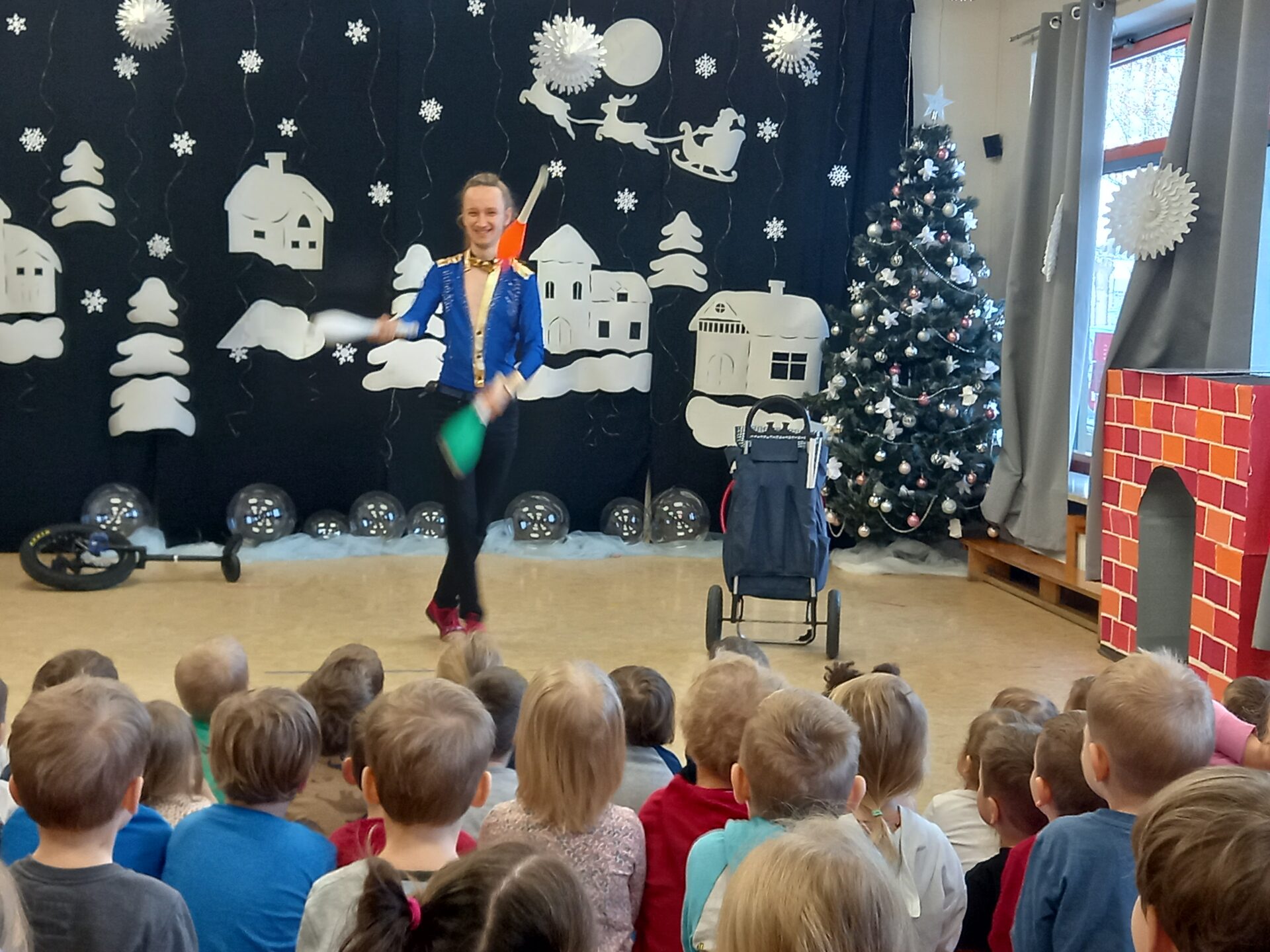 W przedszkolu odbył się niezwykły pokaz cyrkowy, który dostarczył dzieciom wielu wrażeń. Przedszkolaki mogły zobaczyć, jak artysta żonglują różnymi przedmiotami, a także wykonują pokazy zręcznościowe, m.in. podczas jazdy na rowerze.