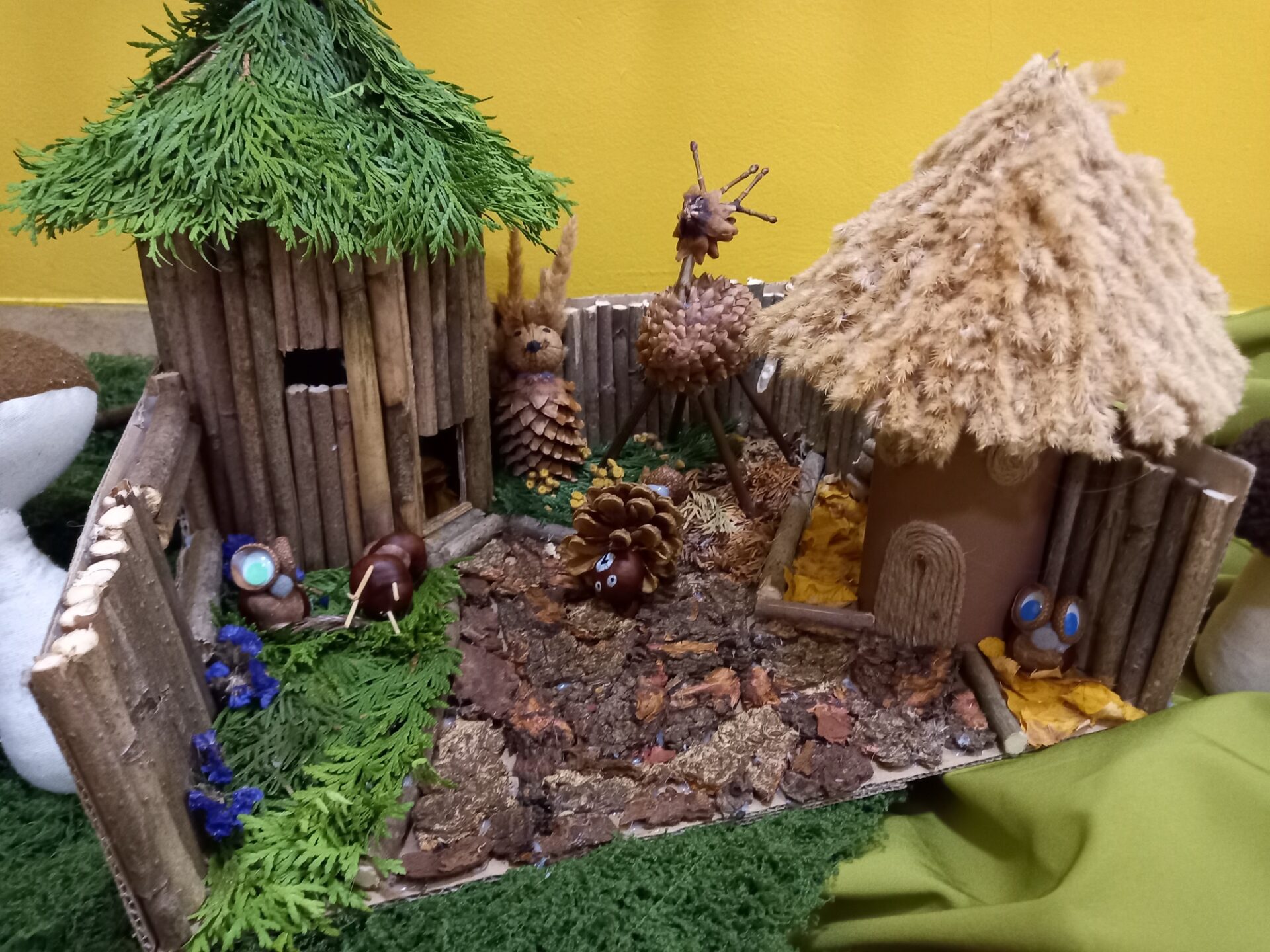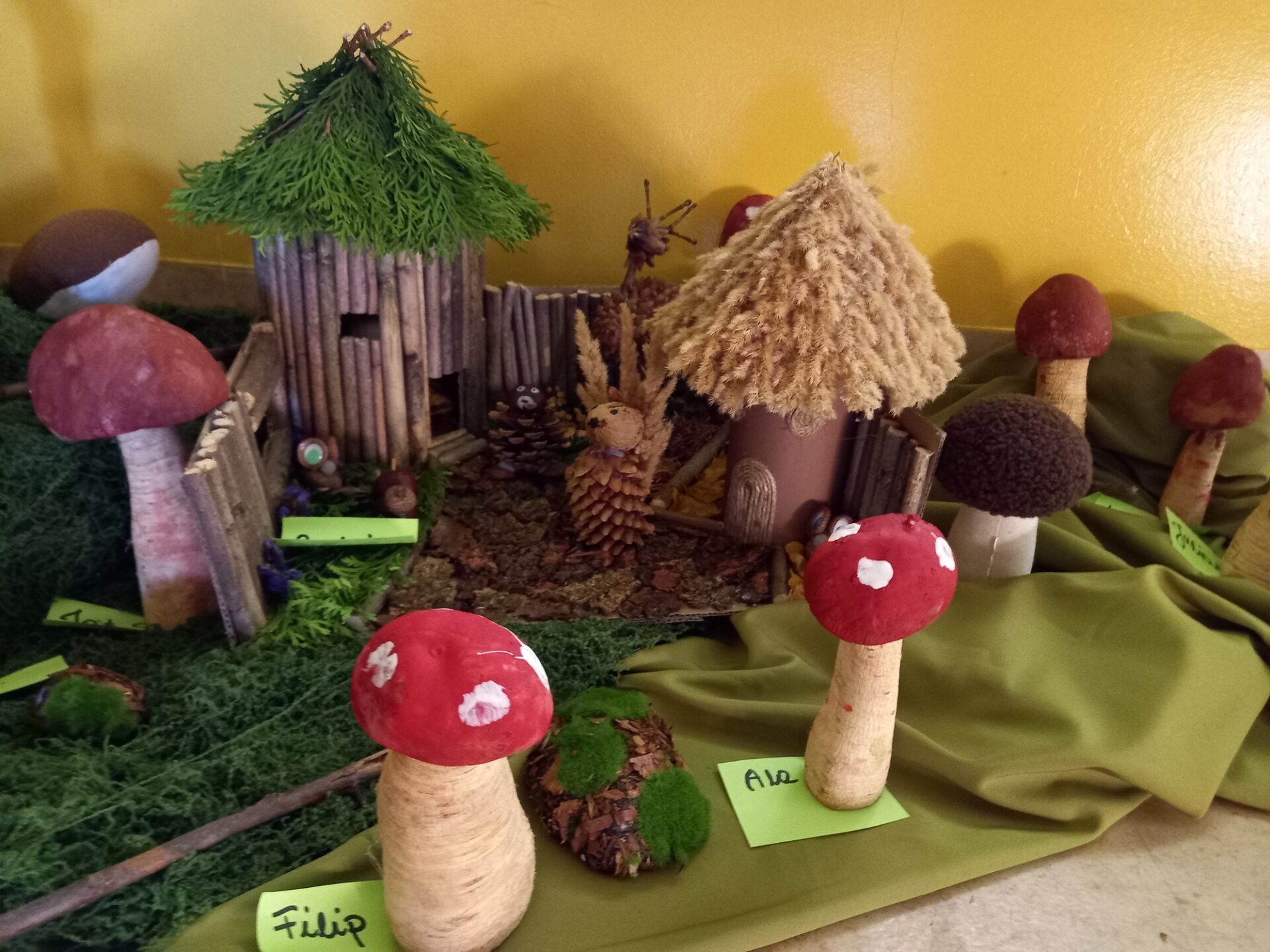 W grupie „Pszczółki” odbył się wyjątkowy przegląd plastyczny. Dzieci wspólnie z rodzicami wykonały piękne leśne domki z darów jesieni – z liści, kasztanów, żołędzi, szyszek i innych naturalnych materiałów. Każda praca była pomysłowa i niepowtarzalna.