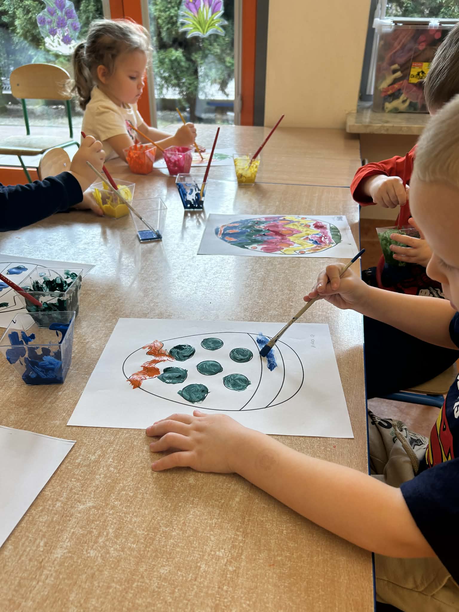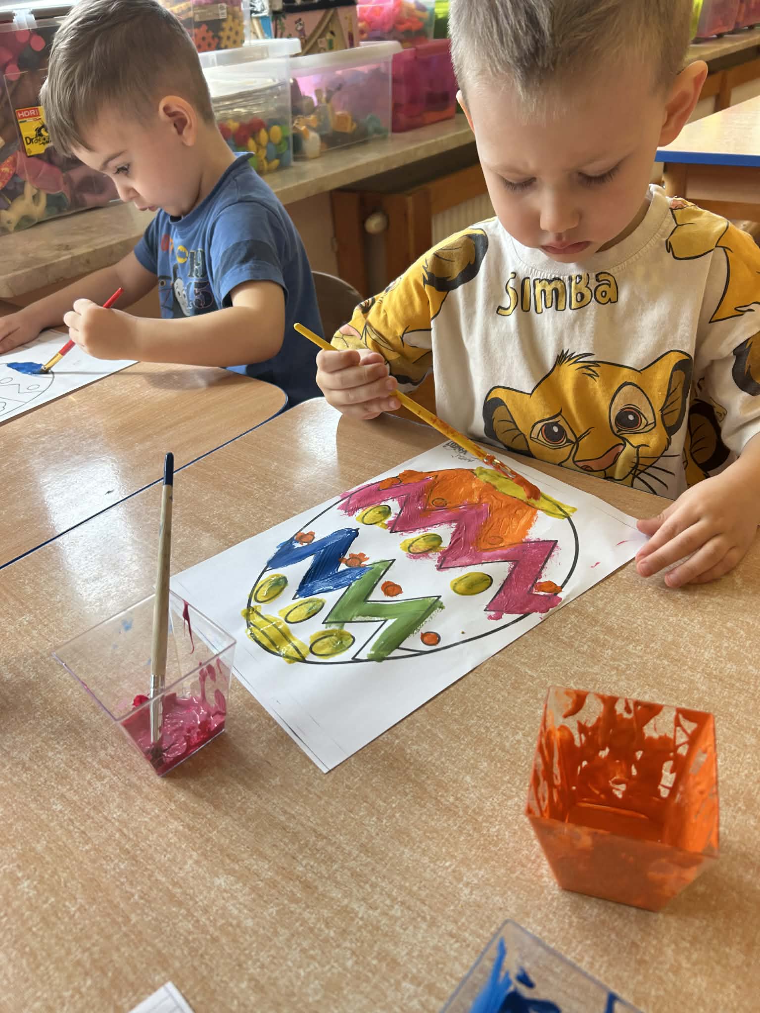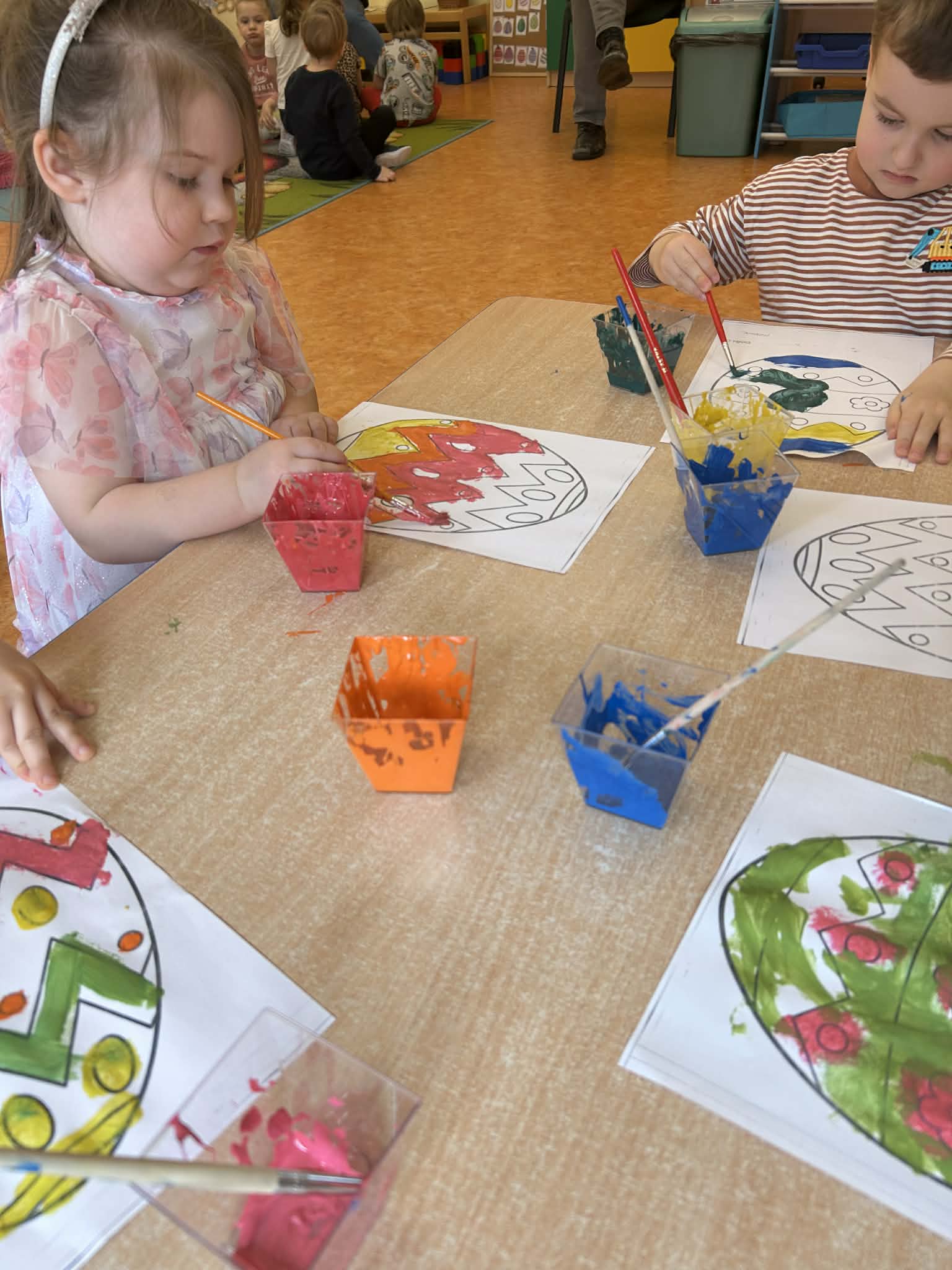 Grupie Słoneczek przygotowania do świąt ruszyły pełną parą. Pierwszy etap – malowanie pisanek w formie kolorowanki