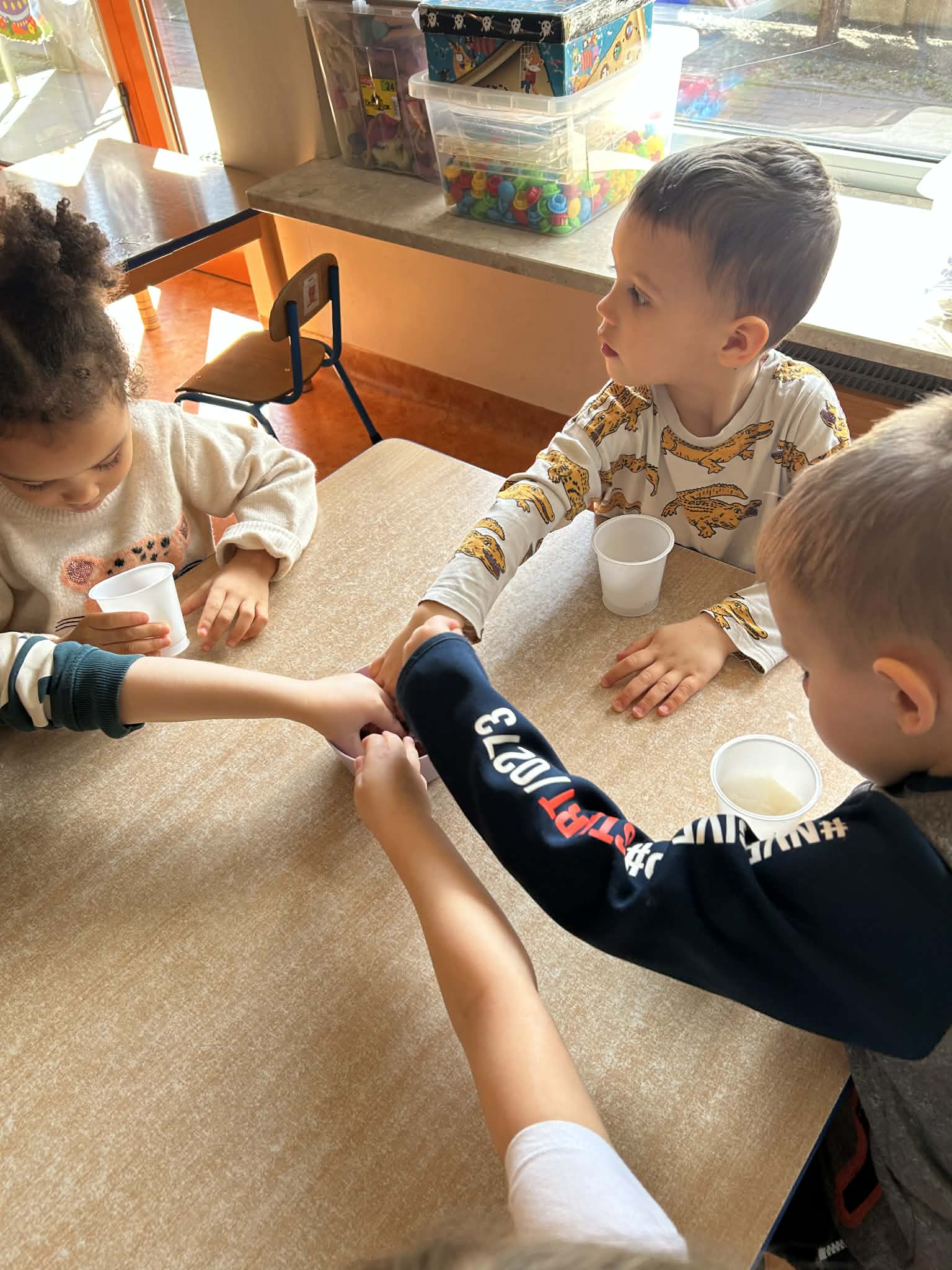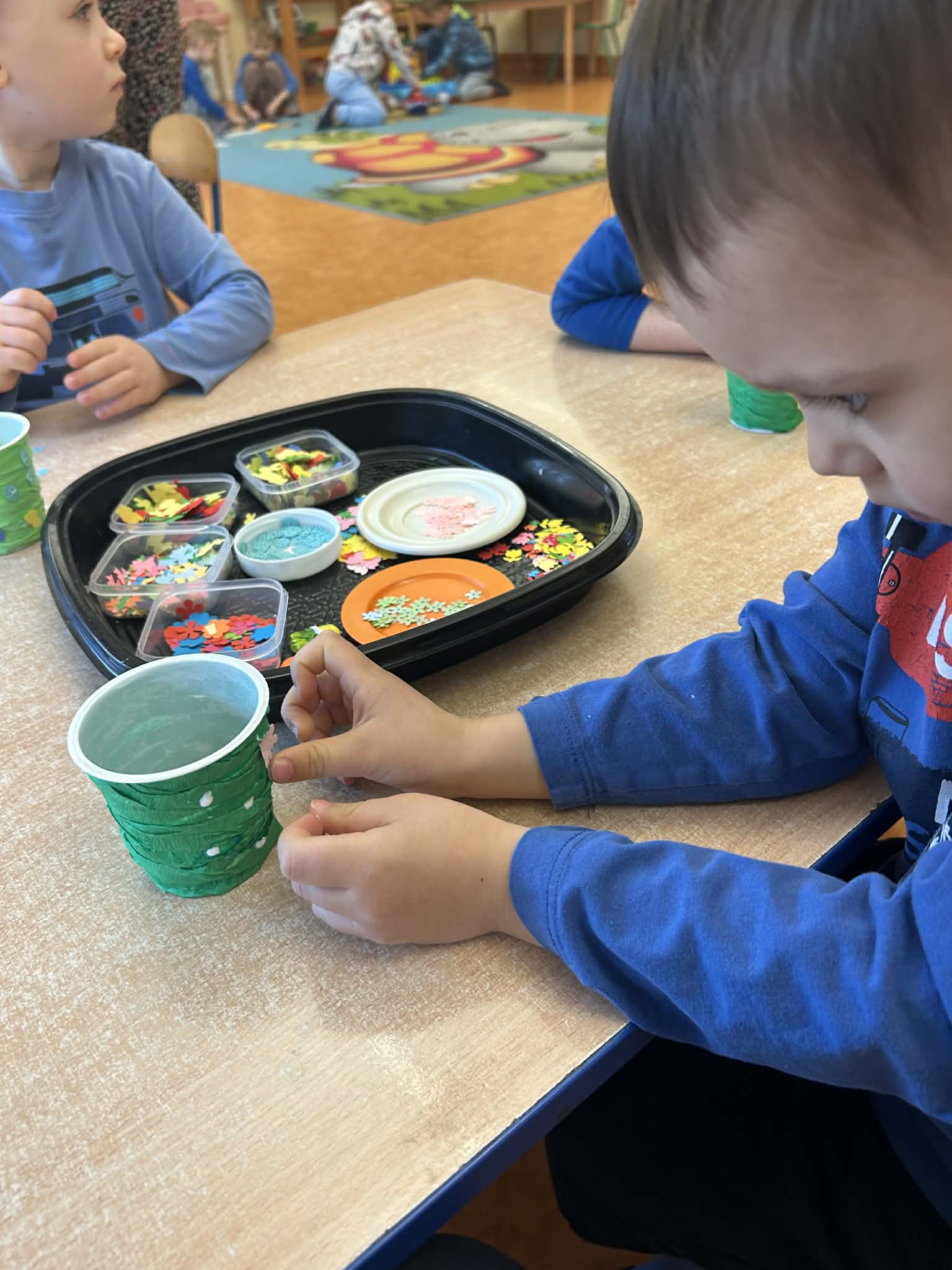 W naszej sali powstał mały „ogródeczek”, o który dzieci z wielkim zaangażowaniem dbają każdego dnia.  Siejemy rzeżuchę, sadzimy dymkę cebulki i kwiaty cebulowe, a także wysiewamy pierwsze wiosenne kwiaty.