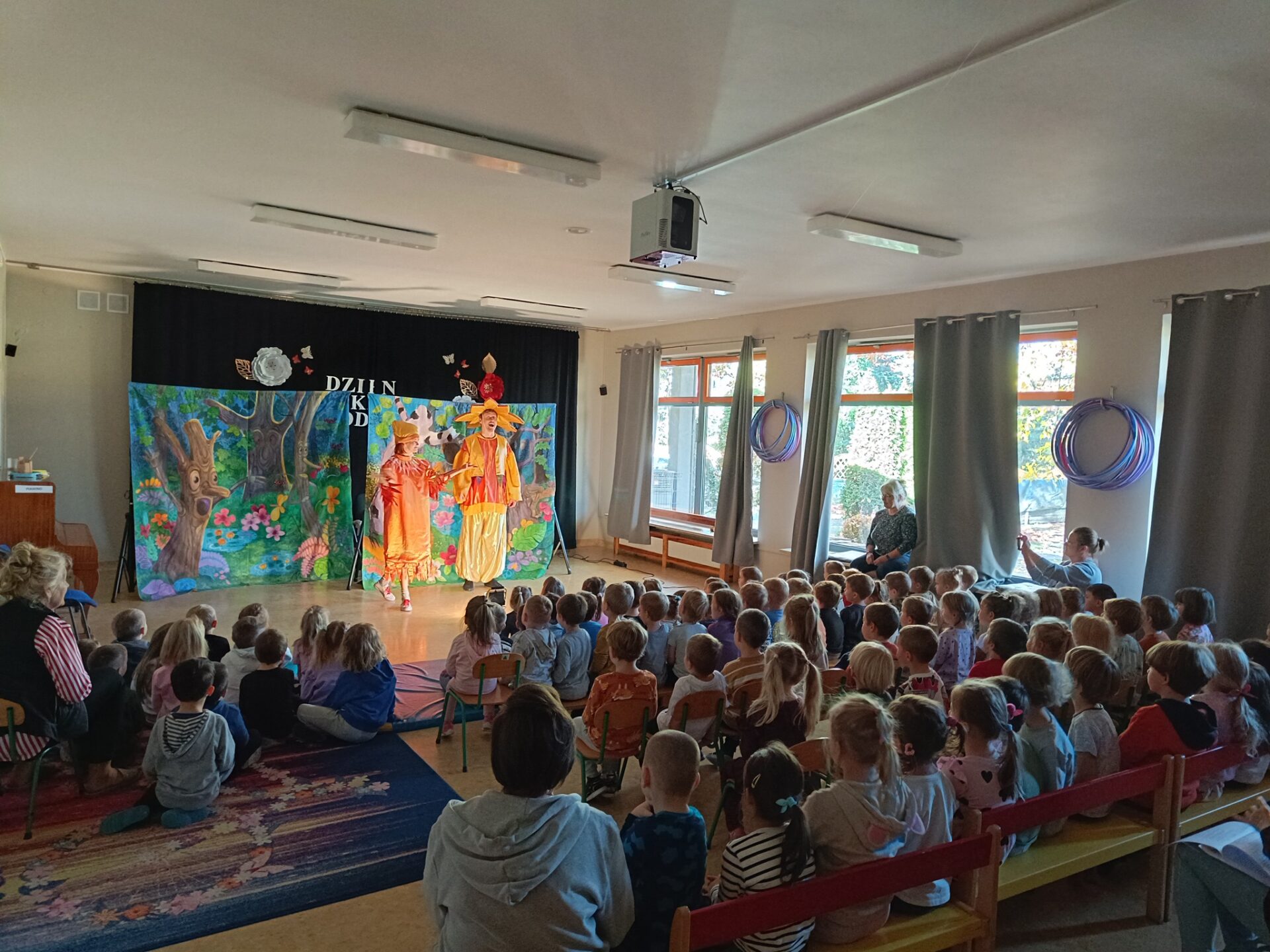 20 października nasze przedszkolne sale zamieniły się w prawdziwą leśną scenę! Gościliśmy Teatr „Warszawski Koliberek”, który zaprezentował spektakl pt. „Leśna wyprawa Jasia i Małgosi”.