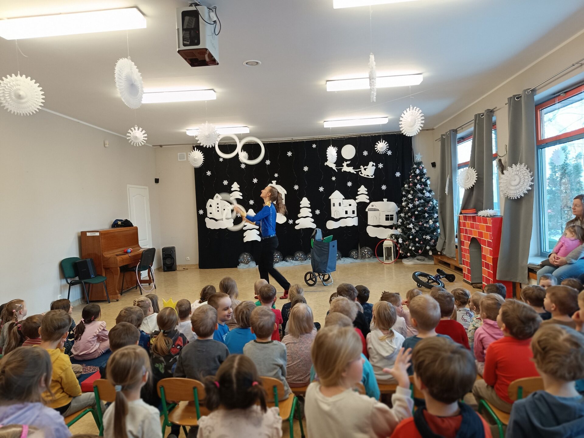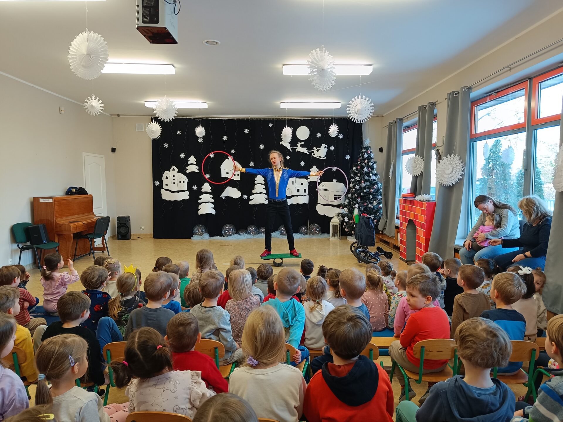 Tego dnia w przedszkolu działy się rzeczy, które trudno było przewidzieć. Piłeczki latały w powietrzu, obręcze kręciły się bez końca, a dzieci patrzyły z szeroko otwartymi oczami.